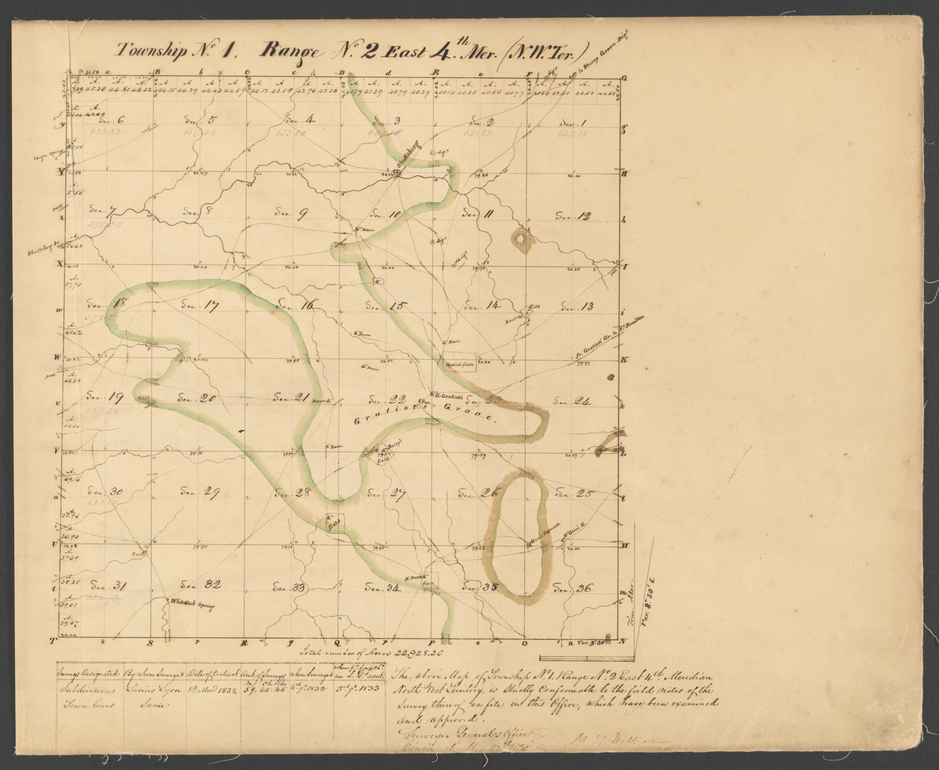 The field notes and plat maps of the public land survey of Wisconsin are a valuable resource for original land survey information, as well as for understanding Wisconsin's landscape history. The survey of Wisconsin was conducted between 1832 and 1866 by the federal General Land Office. This work established the township, range and section grid; the pattern upon which land ownership and land use is based. The survey records were transferred to the Wisconsin Board of Commissioners of Public Lands after the original survey was completed. Since that time, these records have been available for consultation at the BCPL's office in Madison, as hand-transcriptions, and more recently on microfilm. Now, they are available via the internet as electronic images at
